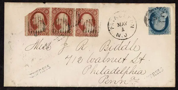 Categories: 1851 to 1861 3c Pretty Red Covers by State, CURRENT, Stamp, UNITED STATES