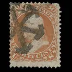 Lot 120 – UNITED STATES: 1861 30c orange with black New York Foreign Mail “Octagon with Cogged Wheel Center” cancellation