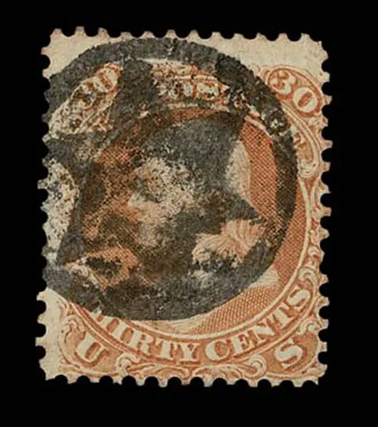 Lot 124 – UNITED STATES: 1861 30c orange, black New York Foreign Mail “Six Point Star Inside Circle. “Pictoriai” cancellation