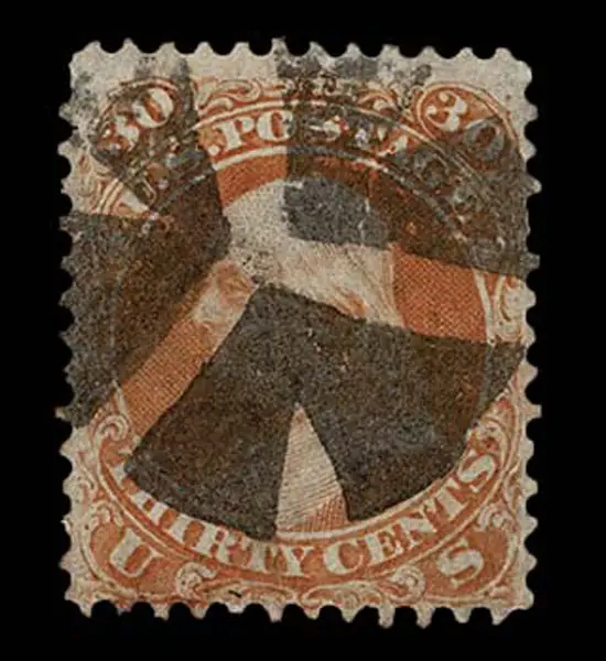 Lot 132 – UNITED STATES: 1861 30c orange, black New York Foreign Mail “Three Segment” cancellation