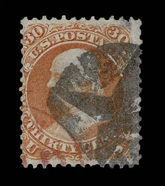 - Lot 139 – UNITED STATES: 1861 30c orange, used with black “Four Point Star Inside Circle” cancellation