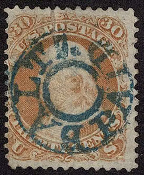 - Lot 150 – UNITED STATES: 1861 30c orange, used blue double circle “BALTO PAID” cancellation