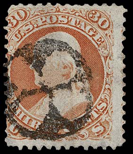 - Lot 153 – UNITED STATES: 1861 30c orange with black negative “Cross Inside Circle” cancellation