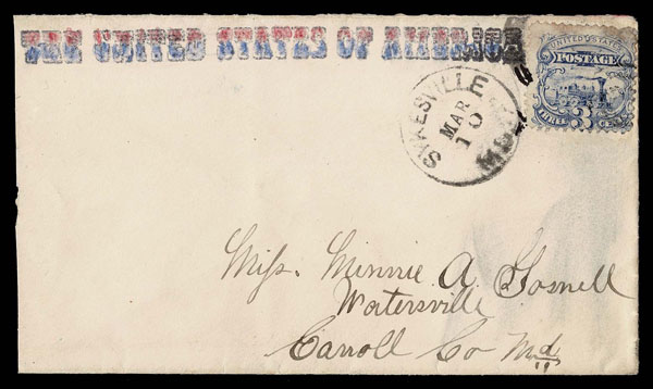 - Lot 256 – UNITED STATES: Forgery; 1869 3c “used on patriotic cover”