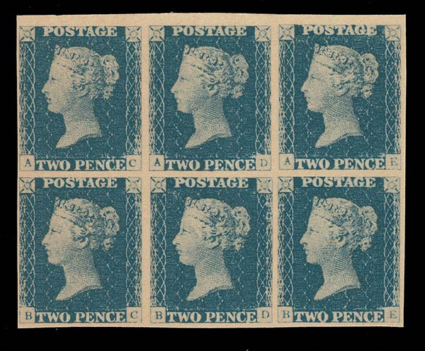- Lot 311 – FORGERIES & FANTASIES: GREAT BRITAIN 1847 2p pale blue BLOCK OF SIX on thick paper