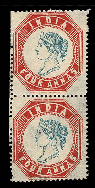- Lot 314 – FORGERIES & FANTASIES: India : 1854 4a blue and red Vertical Pair