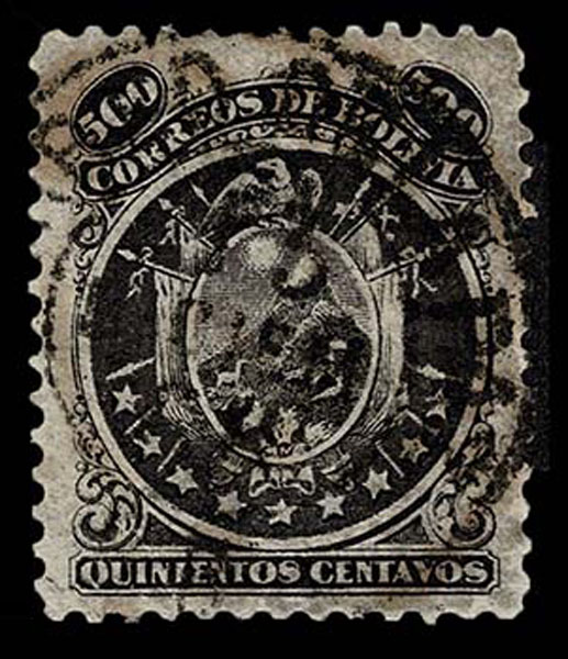 SR SPERATI: Bolivia 1868-69 500c black .centering and cancel perfect handstamp on reverse .