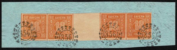 - Lot 324 – FORGERIES & FANTASIES: German States Bavaria 18K orange gutter strip of four
