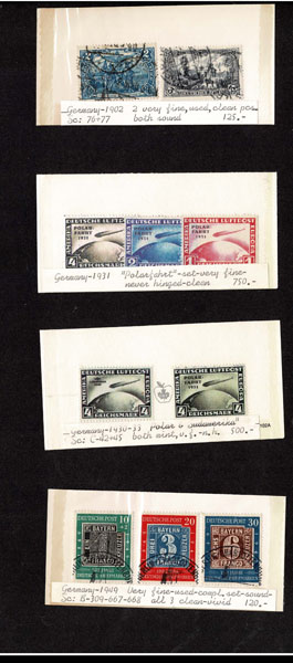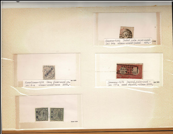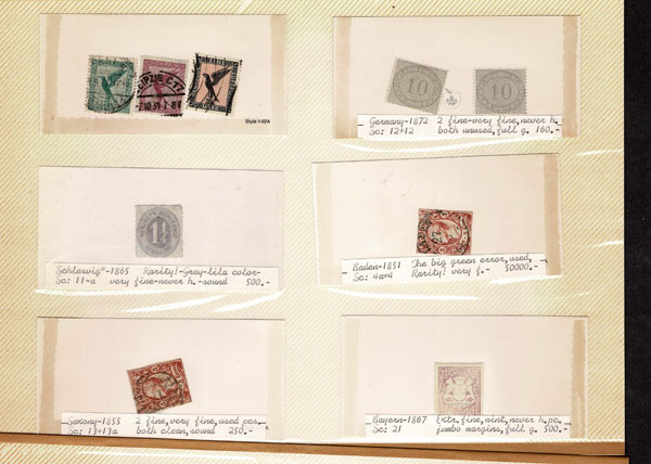 F FORGERIES & FANTASIES: GERMAN STATES, etc. 425 stamps .colors and impressions a bit off perhaps some low values genuine, great variety, all in dealers prices cards and photo album .