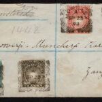 Lot 353 - BRITISH SOLOMON ISLANDS: 1913 Used to Russia; 1/2d green, 1d red