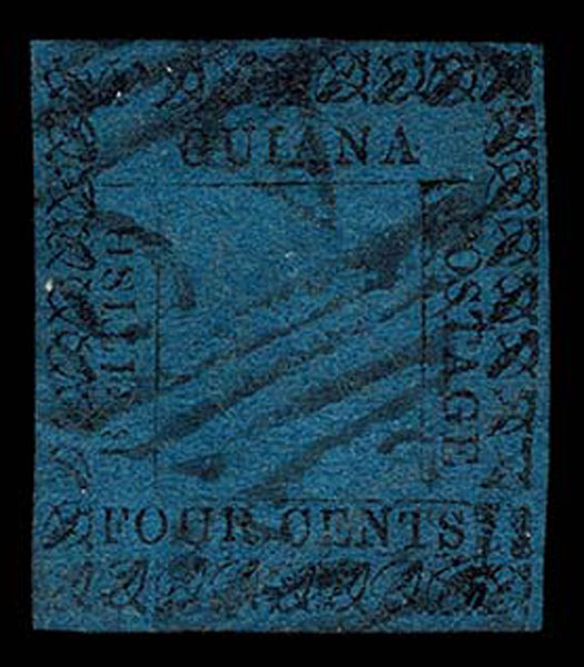 Lot 341 – BRITISH GUIANA: 1862 Provisional 4c black on blue