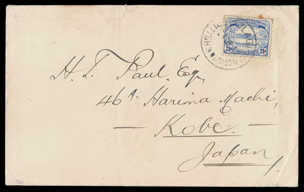 Lot 345 – BRITISH SOLOMON ISLANDS: 1911 2 1/2d ultramarine Used to Japan