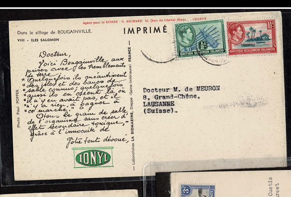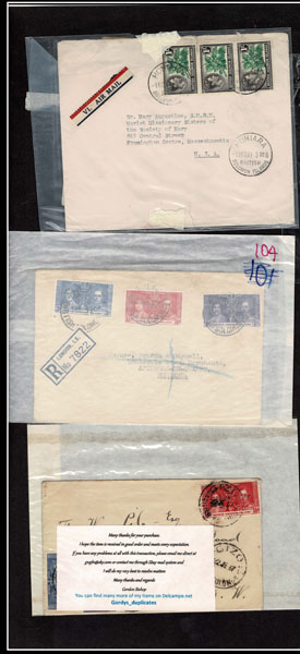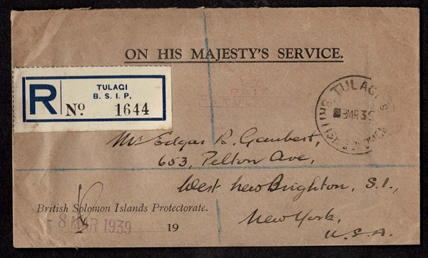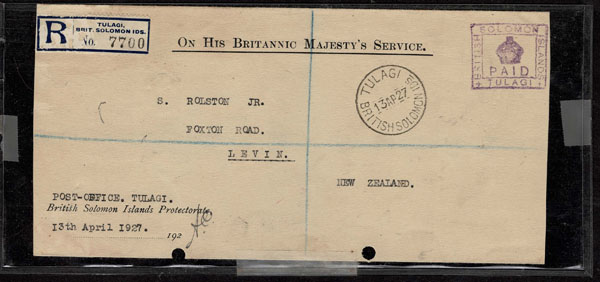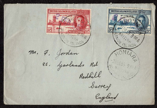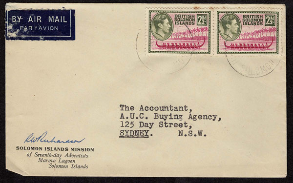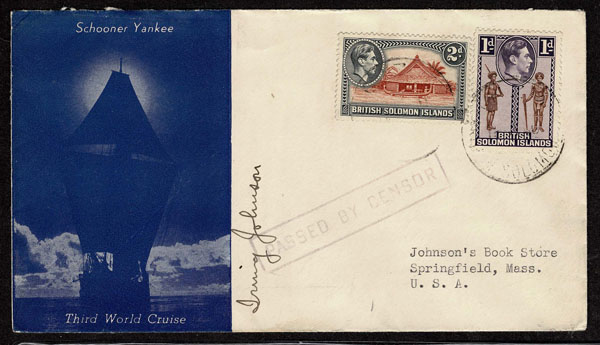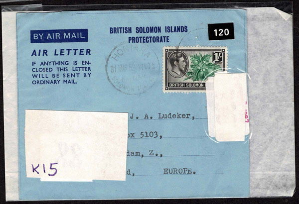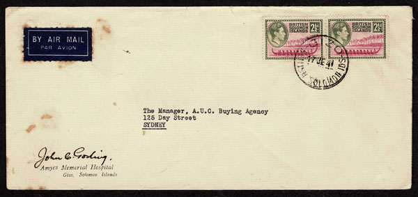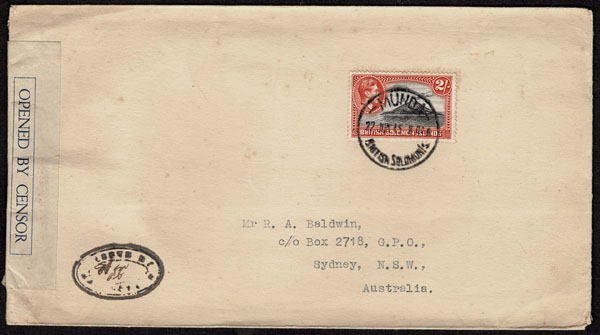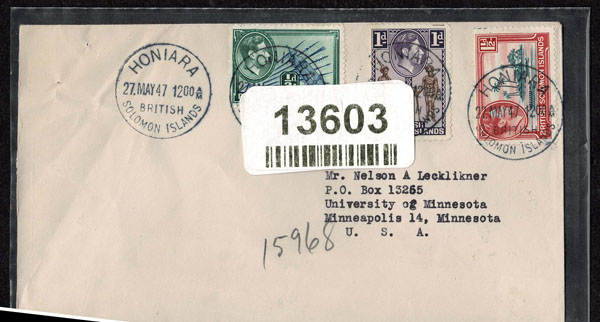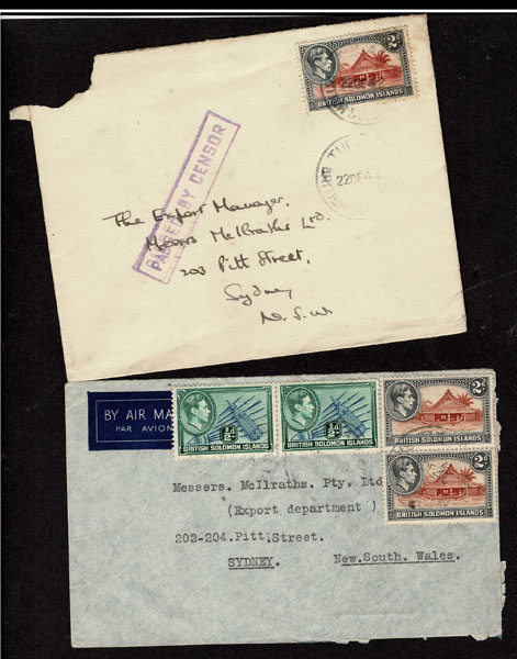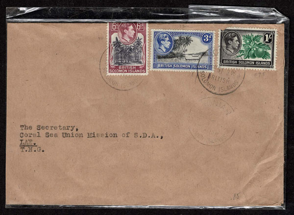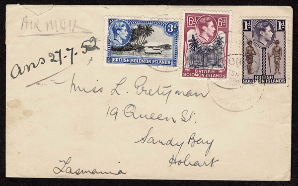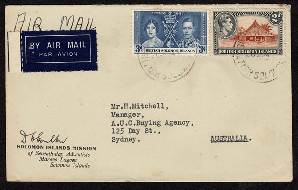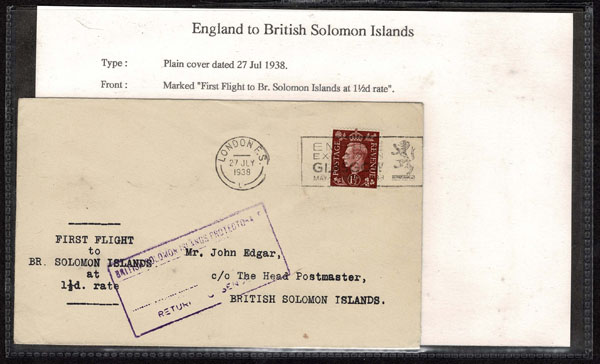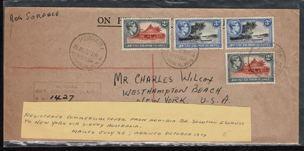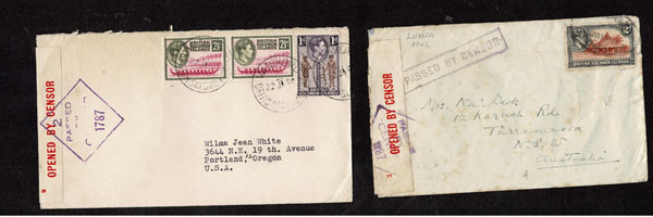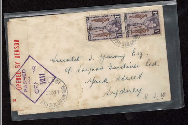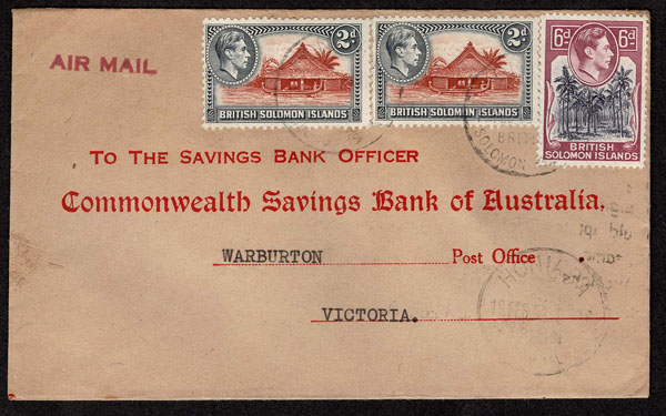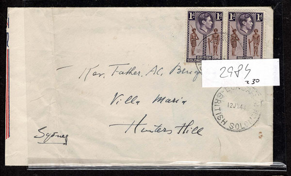 BRITISH SOLOMON ISLANDS: 1913 to 1935 George VI Issues; 180+ covers running the gamut of the pre and post war issues . Fabulous multiple frankings from many islands, O.H.M.S., censured, destinations, a C.P.U. presentation booklet, a few on auction lot sheets, Prestige, Victoria. Well worth a look online . Ex. Bromberg.