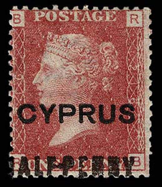 Lot 398 – CYPRUS: 1881; 1/2d on 1d red Plate 216