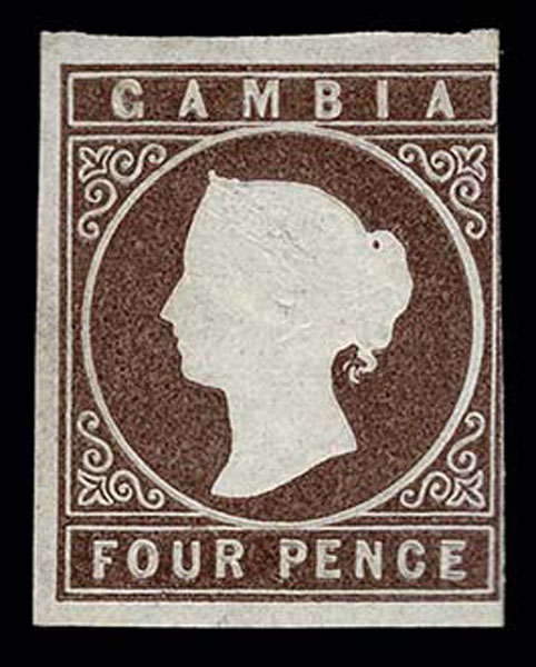 Lot 400 – GAMBIA: 1869 4p pale brown and 6p blue