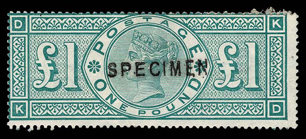 - Lot 411 – GREAT BRITAIN:1891 ?1 green overprint SPECIMEN