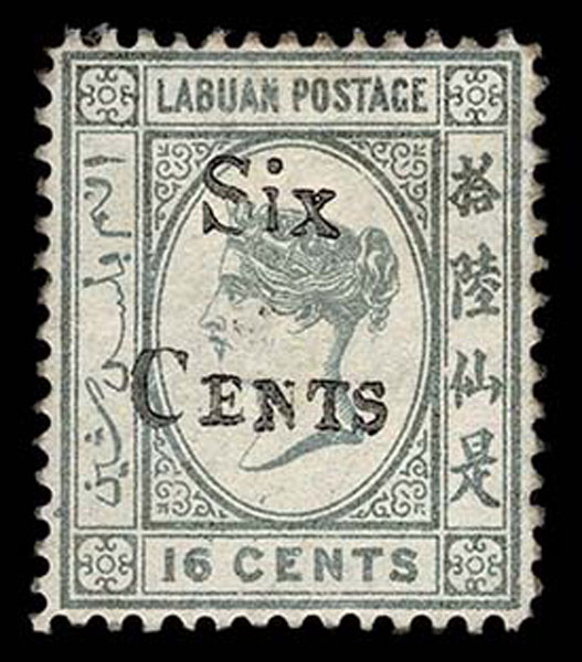 LABUAN: North Borneo: 1893 Six Cents on 16c gray ,o.g., well centered , fresh and very fine. (SG 50 350) (41)… $450