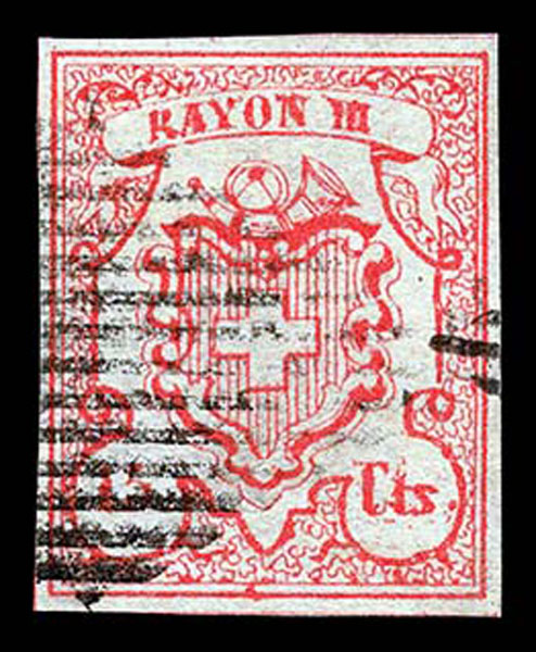 - Lot 486 – SWITZERLAND: 1852 15c vermilion
