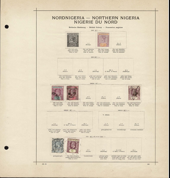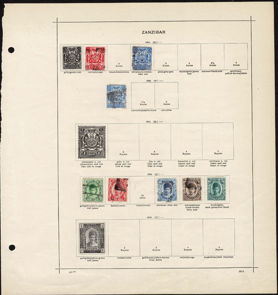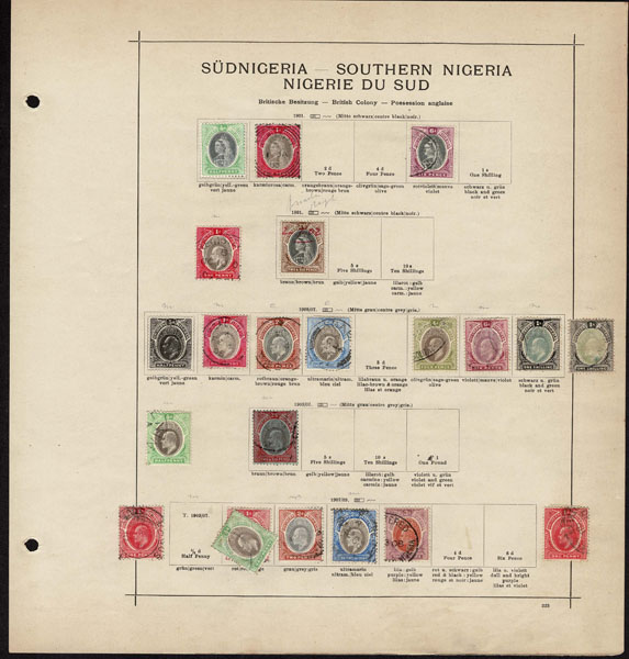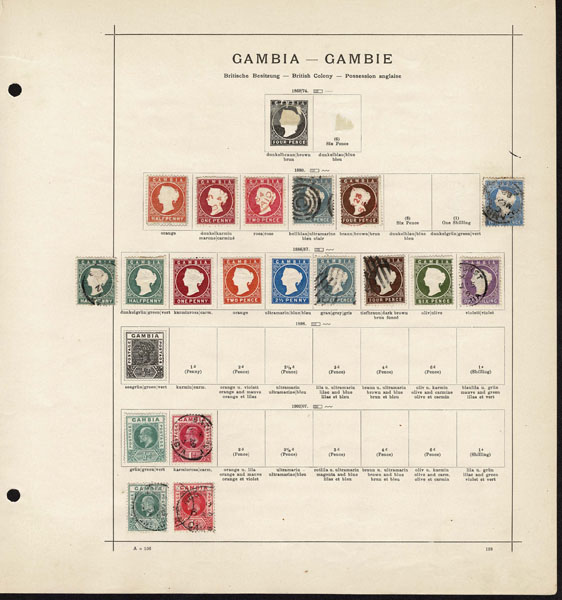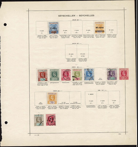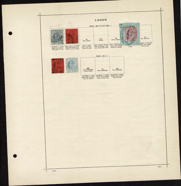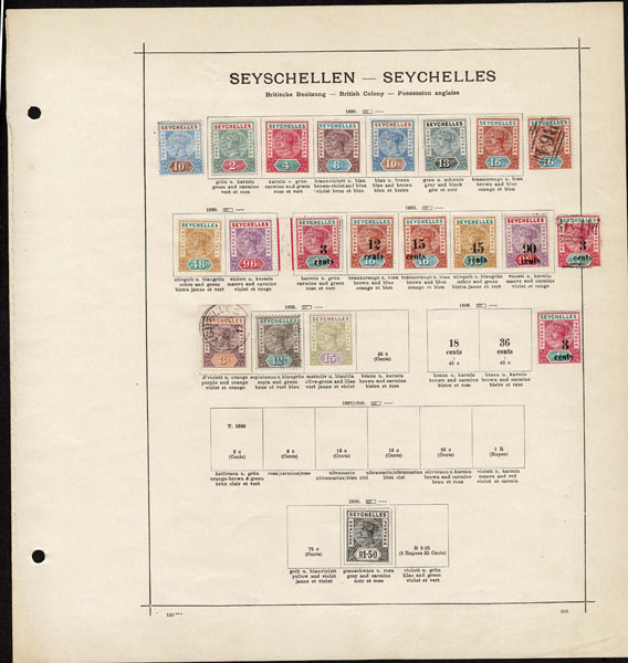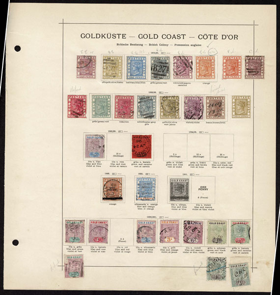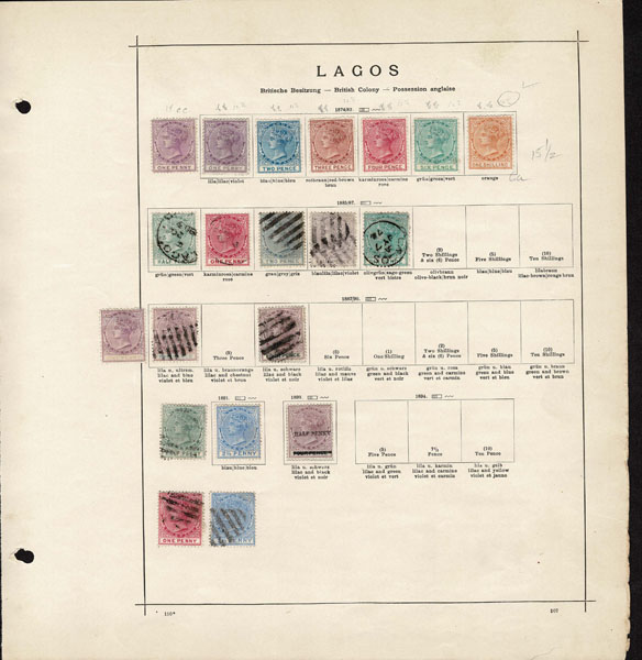/O BRITISH CENTRAL AFRICA: 1870 to 1918 a few hundred mostly used stamps ,Gambia, Gold Coast, Lagos. Seychelles, Sierra Leon, Zanzibar, on old-time Schaubeck album pages, complete and short sets, including Lagos 1st issue, part o.g,. Definitely worth a look .