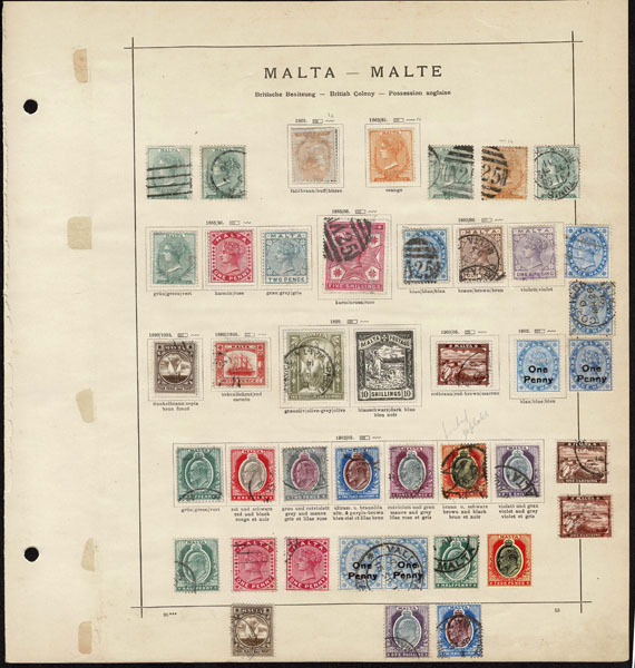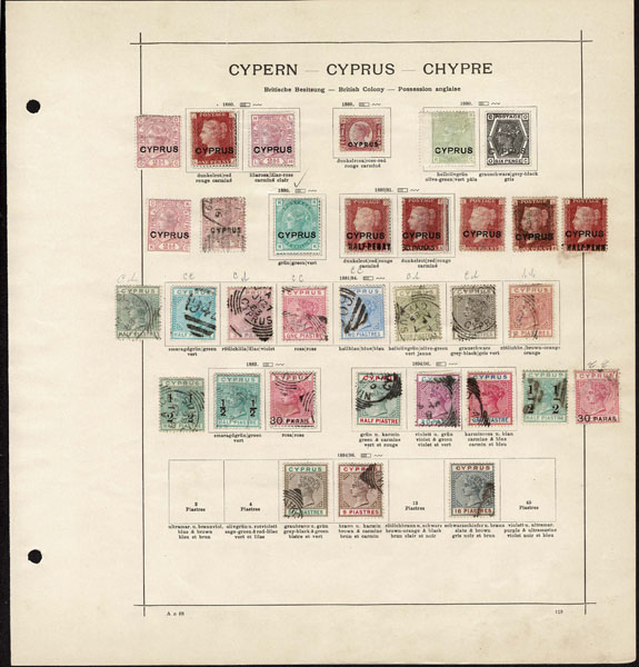 /O BRITISH EAST EUROPE: 1860’s to 1910 Collection of 233 stamps on old-time Schaubek album pages ,comprising Gibraltar including 1st issue , o.g. and others etc. Heligoland, some higher catalogue items; Ionian Islands 1-3. Malta, Cyprus, better plates; St. Helena nice overprints, some stuck down by old time hinges (should not effect used stamps) mixed condition. Better than normal groups .