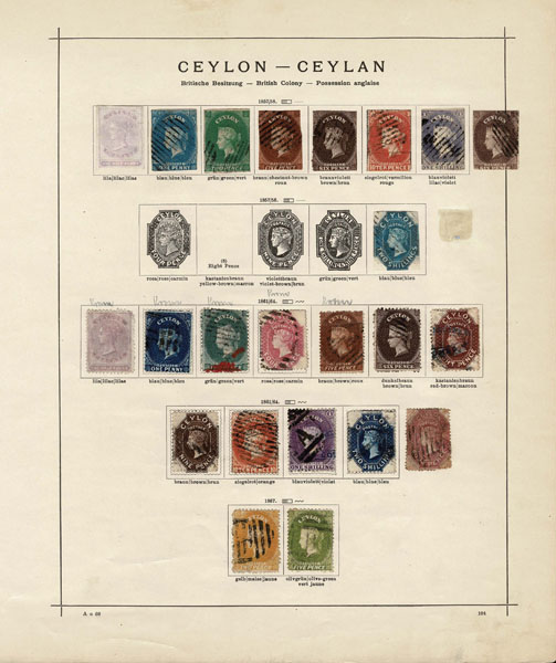 Lot 504 – CEYLON: 1857 to 1910 Collection of 180 mostly used stamps on old time Schaubeck album pages