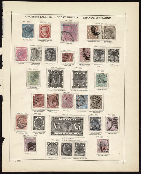 - Lot 505 – GREAT BRITAIN: 1854 to 1902 Collection of about 215 stamps on old-time Schaubek album pages