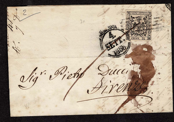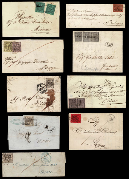 ITALIAN STATES; POSTAL HISTORY; A selection of 36 classic covers ,comprising Modena – 4, Parma -7 , Romon St-7, Sardinia 3, Two Sicilies -3, Tuscany – 9 , and Italy -3, nice old time selection not seen for many, many decades .