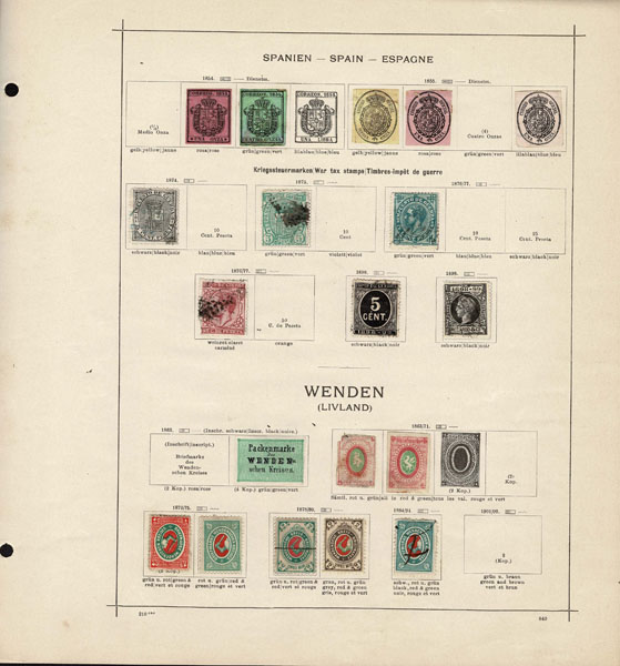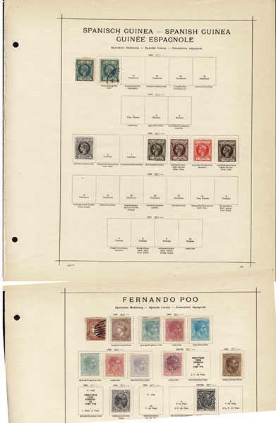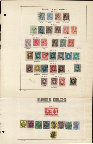 /O SPAIN & SOME COLONIES; 1850 to 1910 Collection of many hundred mostly used stamps ,on old-time Schaubek album pages, quite a few sets to catalogue in the hundreds, some stuck down by old-time hinges (should noy affect used stamps), mixed condition (few high-end with repairs) s useful lot .