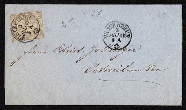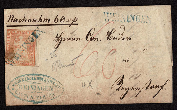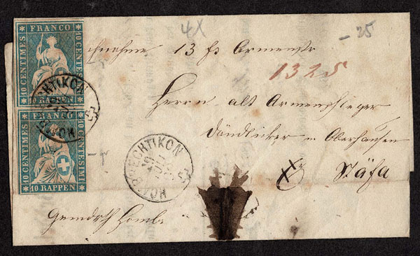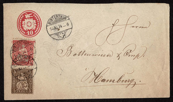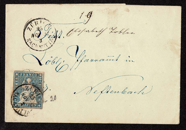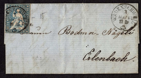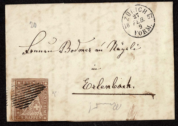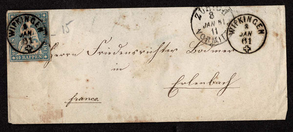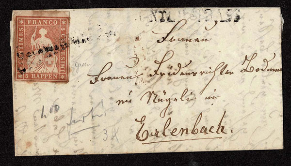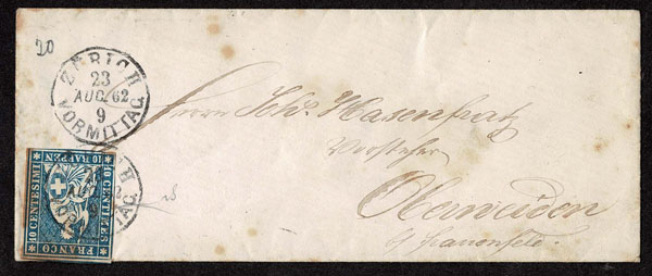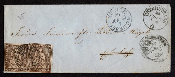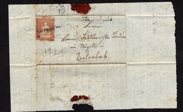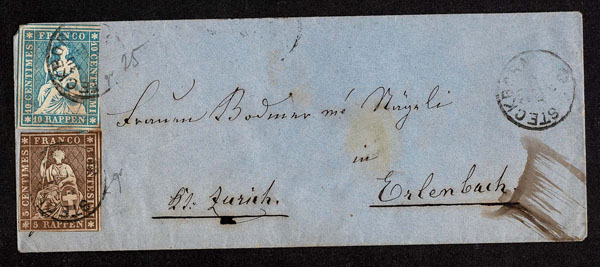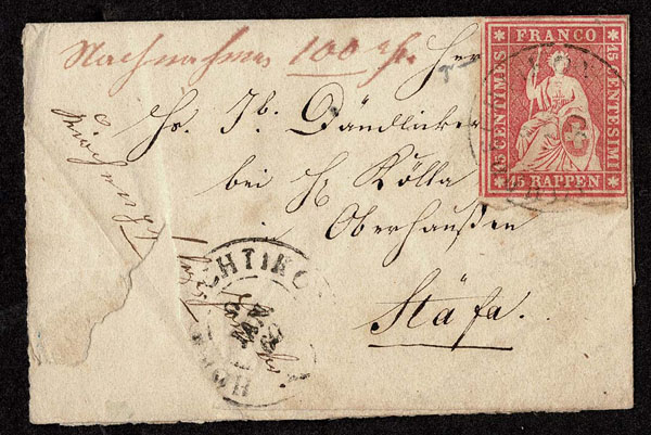 SWITZERLAND: Post History: 1850 to 1880’s; 35 classic covers in small cover book, some better or interesting, the 24 Sitting Helvetia’s have not been diagnosed, never seen on the market for over 100 years, condition varies as would be expected .