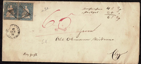 Lot 541 – SWITZERLAND: Post History: 1850 to 1880’s; 35 classic covers